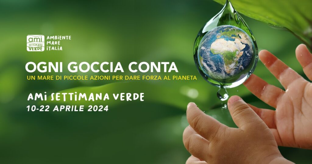 Ogni goccia conta. Un mare di piccole azioni per dare forza al Pianeta” è il claim della campagna AMI Settimana Verde 2024. La goccia è l’azione, anche piccola, che ognuno di noi può fare per salvaguardare e proteggere la Terra, gli Oceani e i Mari del nostro Pianeta. Anche quest’anno tutte le delegazioni territoriali di AMI, le Associazioni, le Istituzioni e le scuole sono invitate ad aderire alla Settimana Verde 2024.