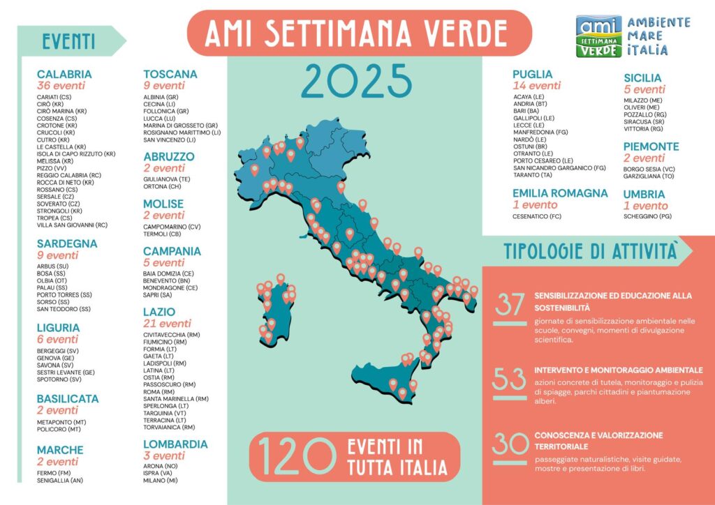 Ambiente Mare Italia – AMI è impegnata da anni nella protezione e valorizzazione del patrimonio ambientale e culturale del nostro Paese e la Settimana Verde rappresenta il culmine del nostro impegno annuale e un momento in cui Istituzioni, Comuni, scuole, aziende, associazioni, cittadini e studenti uniscono le forze per realizzare azioni concrete e sensibilizzare sul tema della sostenibilità e della protezione e promozione ambientale.