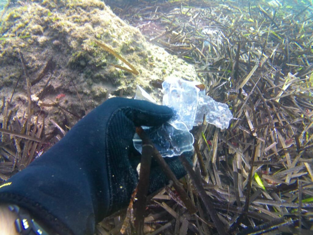L’intervento dei volontari subacquei ha permesso di rimuovere dal fondale marino numerosi rifiuti di plastica, soprattutto bottiglie e reti da pesca, intrappolati tra le foglie di Posidonia oceanica.